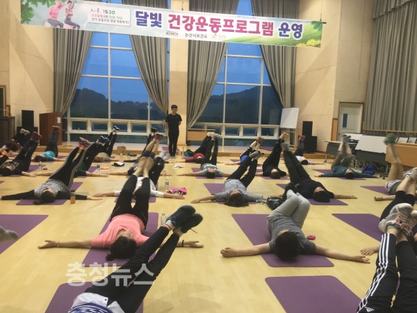 충남 논산시(시장 황명선)가 바쁜 직장인들을 위해 야간에 운영하고 있는 ‘달빛 건강운동프로그램’이 주민들에게 큰 호응을 얻고 있다.