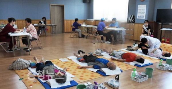 이번 무료진료를 위해 동주민센터는 어르신들에 대한 홍보활동을 비롯해 매트, 탁자 등을 준비했으며, 충남여고 학생 자원봉사자 27명은 진료장소 안내 및 거동불편자 부축, 마사지 보조 등 봉사활동도 전개했다.