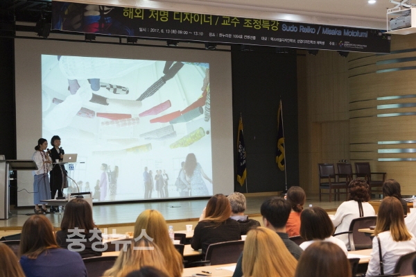 상명대학교(총장 구기헌) ‘창조경제를 선도하는 융합형 창의디자인 인재양성 특성화 사업단’(이하 창의디자인 사업단)이 13일 세계적 명성의 직물디자인회사인 일본 NUNO사의 스도레이코(Sudo Reiko)대표와 가고시마 화이트 갤러리의 미사카 모토후미교수를 초청하여 특강을 개최했다.