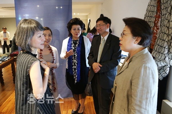 초대전에서 스도레이코 대표와 대화 중인 상명대 구기헌 총장(오른쪽 두 번째)과 김종희 행정대외부총장(오른쪽 첫 번째).