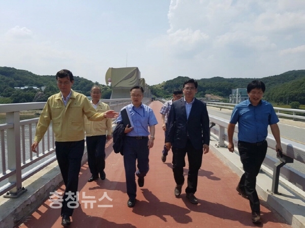 정부 방침에 따라 지난 1일부터 녹조 발생 우려가 심한 4대강 보 6곳의 수문이 개방된 가운데 김일환 대전지방국토관리청장이 13일 공주보 상시개방 현장 및 원봉양수장을 방문하였다.