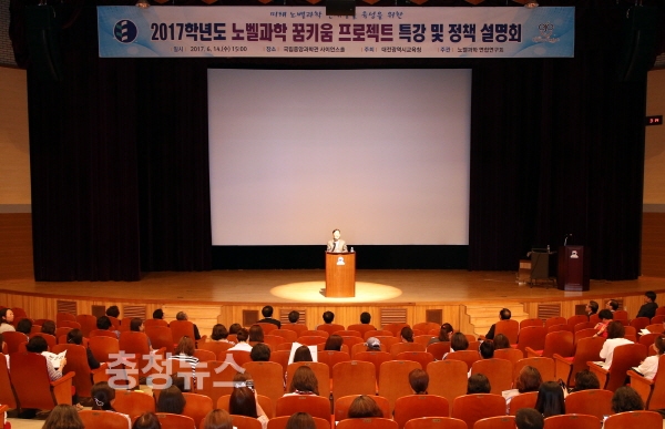 한편, 대전교육청은 14일 오후 3시, 국립중앙과학관 사이언스홀에서 관내 초․중․고등학교 과학교사 및 학부모 등 600명을 대상으로 ‘2017 노벨과학 꿈키움 프로젝트 ’특강 및 정책 설명회를 개최했다.
