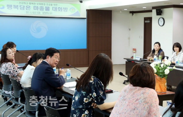 대전 서구(구청장 장종태)는 14일 구청 대회의실에서 지역 내 어린이집 보육교사 21명이 참석한 가운데, 행복 담은 ‘마중물 대화방’ 행사를 가졌다.