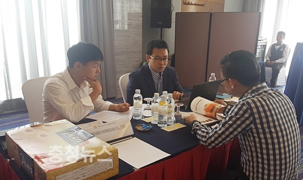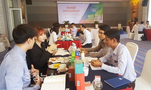 aT는 14일 캄보디아 프놈펜에서 신선과실, 수산제품(조미김 등), 면류, 차류 등 현지 시장에서 유망한 우리 농식품 수출업체 6개 업체와 함께 현지 유력 바이어 15개사를 초청하고 1:1 매칭 상담회를 개최하여 신규 품목 수출 및 현지 대형매장 입점 등의 성과를 거두었다고 밝혔다.
