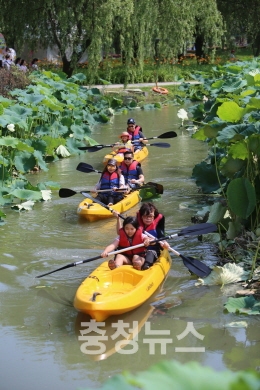 충남 부여군은 청소년과 일반인을 대상으로 연꽃사이를 누비는 '카누, 연지탐험' 체험교실을 오는 24일부터 8월 6일까지 매주 토, 일 궁남지에서 운영한다.