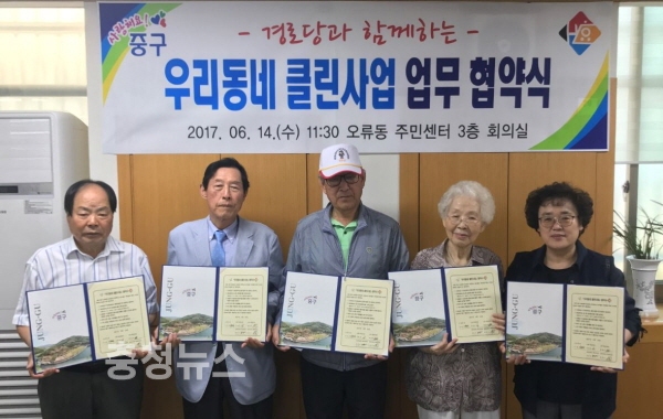 대전 중구 유천1동행정복지센터(동장 임은자)는 15일 주민과 함께 깨끗하고 살기좋은 동네를 조성하기 위해 4개 경로당과 ‘우리동네 클린사업’ 업무협약을 체결했다.