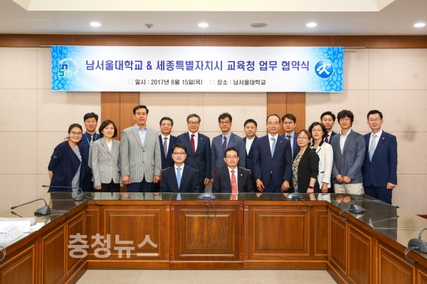 남서울대학교(총장 공정자)와 세종특별자치시교육청(교육감 최교진)은 미래 인재 양성에 상호 협력하기 위해 15일 남서울대 국제회의실에서 업무 협약을 체결했다.