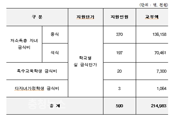 439명에 2억1천5백만원, 기초생활수급자 석식비 추가 지원
