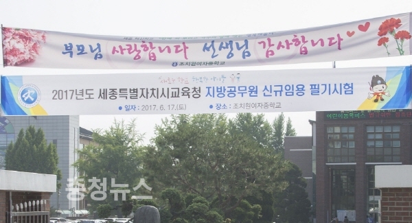 세종시교육청(교육감 최교진)이 17일 전국 시‧도 교육청과 자치단체에서 동시에 실시된 2017년도 지방공무원 공개경쟁임용 필기시험 결과 세종시교육청은 평균 72.0%의 응시율을 보였다.