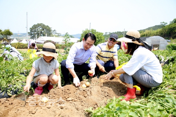 이완섭 서산시장과 함께 감자 캐기 / 충청뉴스 최형순 기자