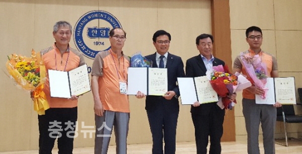 한국화랑청소년육성회 부여군지부 청소년 유해환경 감시활동 우수상 수상 장면