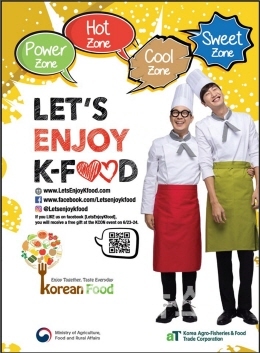 농식품부와 aT는 이러한 추세에 맞추어 이번 행사는 K-Pop 대표 콘서트인 K-Con과 연계하여 이곳을 찾을 5만여 명의 젊은이들을 대상으로 한국식품을 ‘Hot’, ‘Cool’, ‘Power’, ‘Sweet’ zone으로 나누고, 떡볶이와 고추장, 라면, 음료, 홍삼, 스낵 등을 홍보할 계획이다.