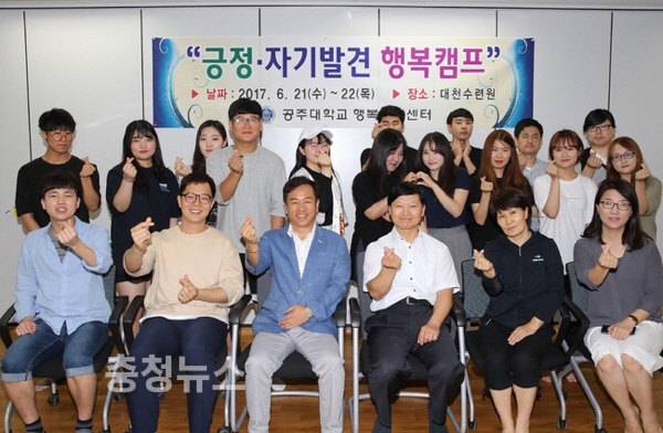 공주대학교(총장직무대리 김희수)는 21일부터 22일까지 1박2일간 공주대 수련원에서 학생 22명을 대상으로“2017년도 긍정·자기발견 행복캠프”를 실시한다고 밝혔다.