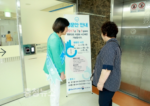 충남대학교병원(원장 송민호)은 7월 1일부터 일정시간에만 병문안이 허용되는 이른바 ‘병문안시간 지정 제도’를 시행한다고 21일 밝혔다.