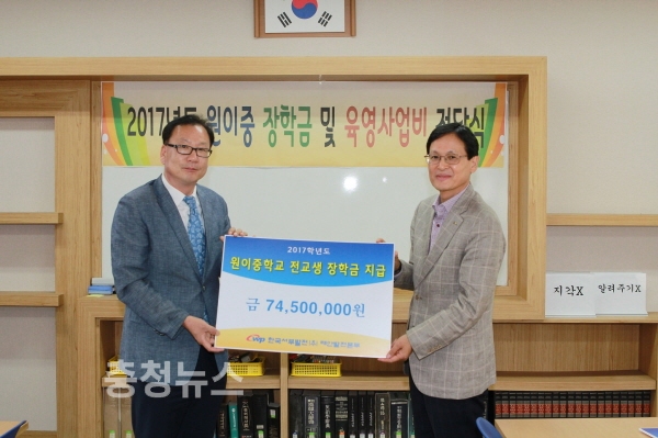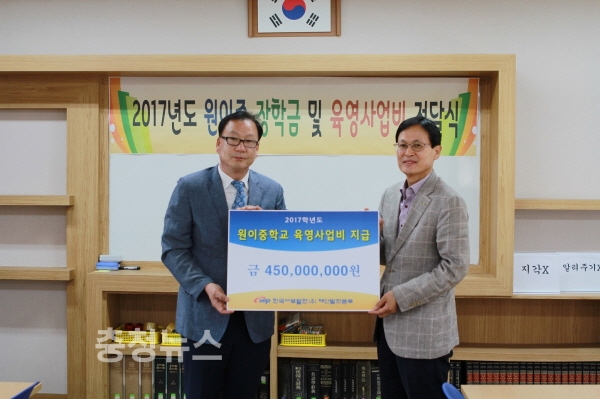 서부발전 태안발전본부는 장학금 7,450만 원을 원이중학교 전교생 149명에게 전달했으며, 육영사업비 4억5천만 원도 함께 전달했다.