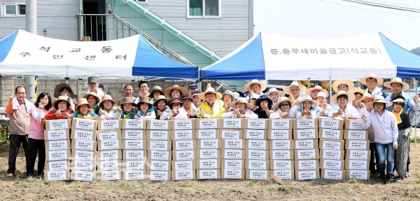 대전 중구 석교동 행정복지센터(동장 김태수)와 동자생단체협의회(회장 김연순)는 22일 호동에 조성한 ‘사랑의 텃밭’에서 감자를 수확해 어려운 이웃 100여 세대에 전달했다.