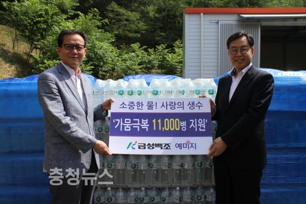 금성백조주택 김호 사장은 지난 21일 보령시 수도사업소 창동 정수장을 찾아 보령시 정원춘 부시장에게 생수 1만1천병을 전달하였다.