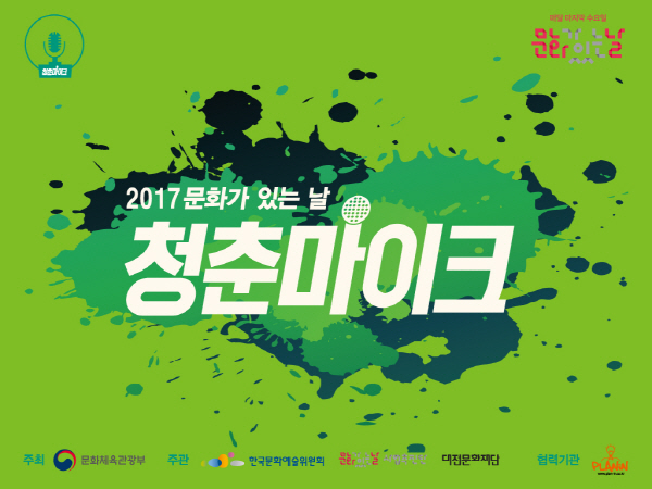 문화체육관광부가 주최하고 문화가 있는 날 사업추진단과 대전문화재단이 주관하는‘청춘마이크’사업은 엄격한 심사를 통해 선발된 청년예술가들에게 매달 마지막 수요일‘문화가 있는 날’에 대전․충청지역의 공연무대에 설 수 있는 기회를 제공하기 위해 마련됐다.