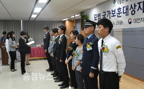 대전지방보훈청(청장 강윤진)은 6월 호국보훈의 달을 맞아 23일 본청 대강당에서 수상자 및 보훈단체 회원 등 100여명이 참석한 가운데 ‘모범 국가보훈대상자 포상 전수식’과 ‘UCC 공모전 시상식’을 개최하였다.