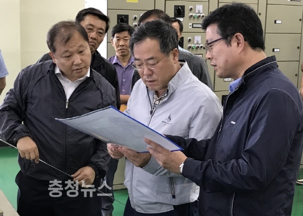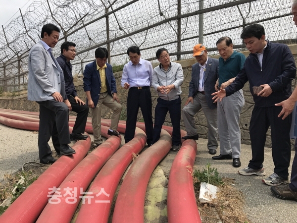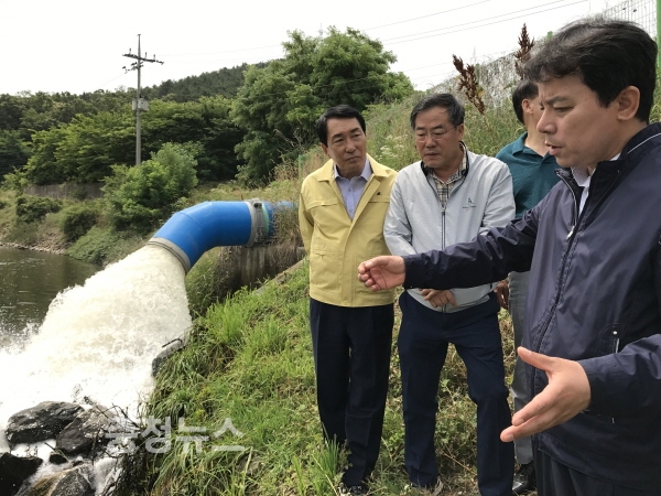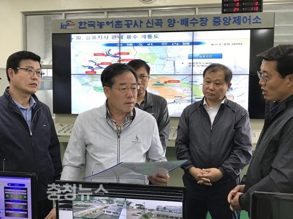 농어촌공사 정승사장은 25일, 안상수 국회의원, 지자체 관계자 등과 한강물 취수부인 김포 강화신곡양수장에서 도 지역 용수공급 구간까지 54km 구간을 직접 돌아보며 용수 공급현황을 점검했다.
