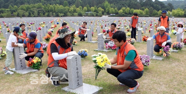 글로벌 선도 타이어 기업 한국타이어(대표이사 서승화)의 동그라미봉사단원 50여명은 24일 대전 유성구 갑동 소재 국립대전현충원에서 호국영령을 기리기 위한 봉사활동을 펼쳤다.