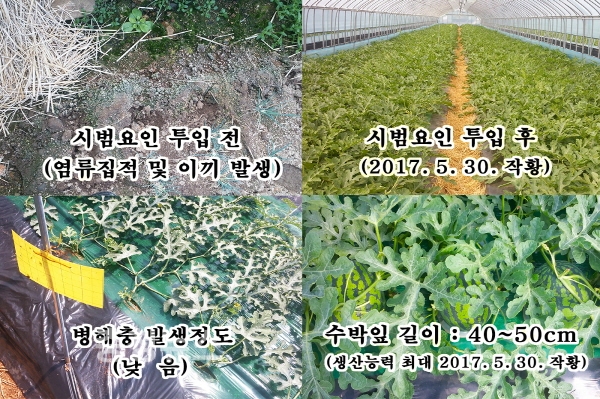 원예특작기술팀은 “시설 수박 연작장해의 문제점을 토양양분 과잉으로 분석하고 토양 건전화를 위한 종합적 토양환경개선 기술을 투입하였다”고 전했다.