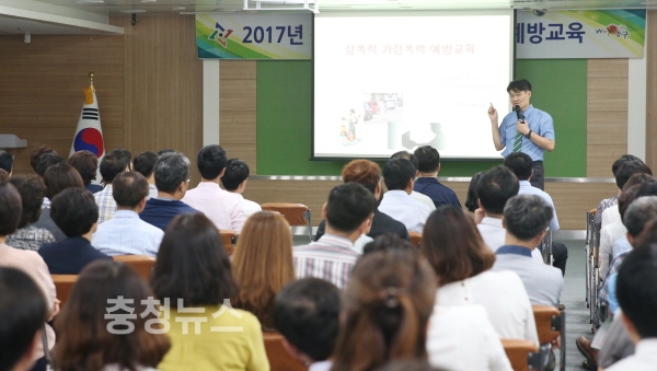 대전 동구(구청장 한현택)는 26일 구청 중회의실에서 공직자 200여 명을 대상으로 성폭력‧가정폭력 예방에 대한 교육을 실시했다.