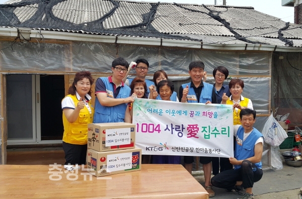 KT&G신탄진공장 1004사랑愛집수리봉사단(단장 서정식)과 대한적십자사 대덕지구협의회(회장 양순덕)는 지난 24일 대덕구 석봉동 소재 홀몸 어르신 가정에 도배와 장판 교체 등 집수리 봉사를 실시했다.