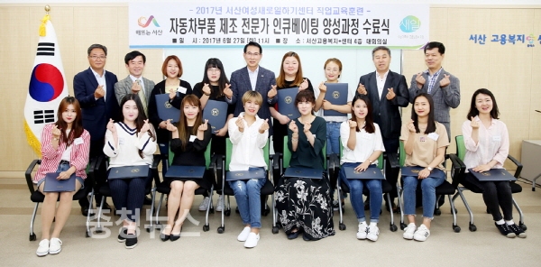 충남 서산시에서 운영하는 여성새로일하기센터가 직업교육훈련인‘자동차부품 제조 전문가 인큐베이팅 양성과정’의 수료식을 27일 서산고용복지플러스센터에서 가졌다.
