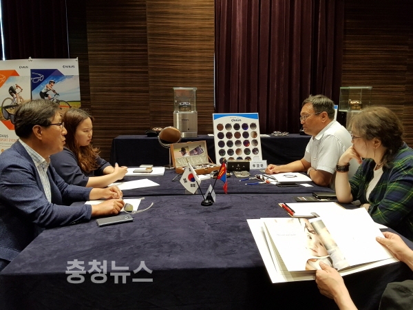 이번 수출상담회에서는 대전을 대표하는 안경렌즈 제조회사 (주)고려광학, 빔텍, (주)포텍, (주)세명전자광학, 유니코스(주) 총 5개 업체가 참여해 중국, 일본, 말레이시아, 몽골 등 관련 제품 해외 바이어와 1대1 수출상담을 진행했다.