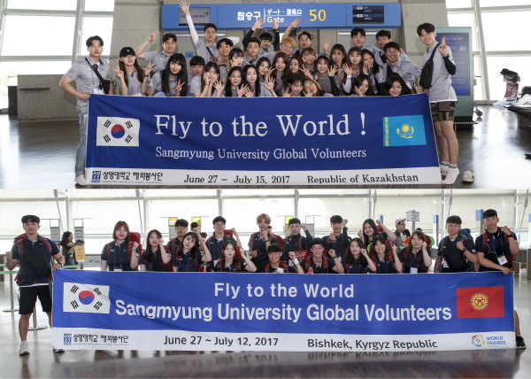 상명대(총장 구기헌) 사회봉사센터가 27일 인천국제공항을 통해 카자흐스탄 알마티와 키르키스스탄 비쉬켁에 각각 32명과 21명, 총 53명의 ‘Fly to the world 2017 하계 해외봉사단’을 파견하였다.
