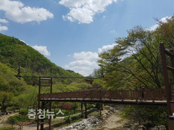백암산과 선야봉 사이 계곡 위로는 하늘다리가 놓여 산림문화타운의 풍경을 한 눈에 담을 수 있다. 하늘과 맞닿을 것 같은 하늘다리 위에서 내려다보는 절경은 답답한 마음을 시원하게 뚫어주고 아름다운 자연으로 풍요롭게 채워준다.