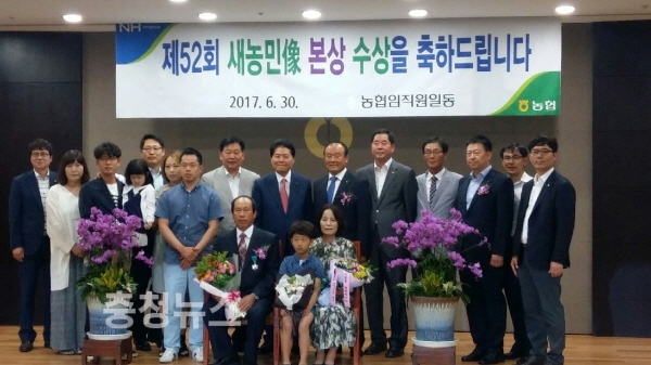 새농민상 본상은 1966년부터 농협중앙회가 탁월한 농업기술과 경영능력을 보여 온 우수농업인을 선정·시상하는 제도로 국내에서 가장 권위있는 농업인상으로 평가받고 있으며 올해는 전국 20부부가 선발돼 수상의 영예를 안았다.
