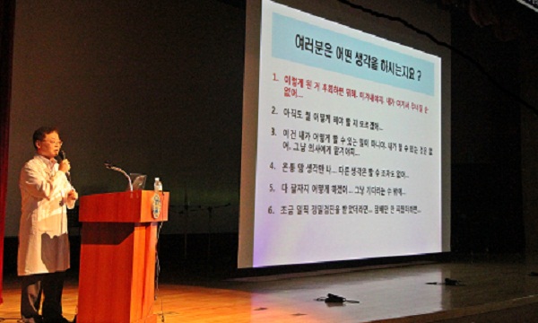 이날 행사는 암 환자들에게 희망과 용기를 주고자 마련된 것으로, △암 치료와 스트레스 관리(정신건강의학과 이창화 교수) △행복한 여자로 살기(산부인과 황인택 교수) △유방암 극복하기(유방갑상선외과 강윤중 교수) △생활 속 암 예방법(방사선종양학과 윤선민 교수) 등에 대한 강의가 진행됐다. 또 ‘웃음과 함께하는 힐링 타임’ 코너를 통해 참석자들에게 웃음과 기쁨을 선사했다.