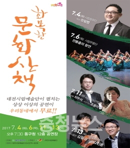 대전 동구(구청장 한현택)는 오는 4일부터 13일까지 구청 공연장에서 화, 목요일마다 대전시립예술단의 화목한 문화산책이 수준 높은 각양각색 공연과 함께 선보인다고 밝혔다.