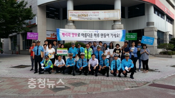 이날 시청역 네거리에서는 교통과와 둔산모범운전자회 40여 명이 교통사고 제로화 공감 확대 및 승용차요일제 참여율 제고를 위한 캠페인을 전개했다.