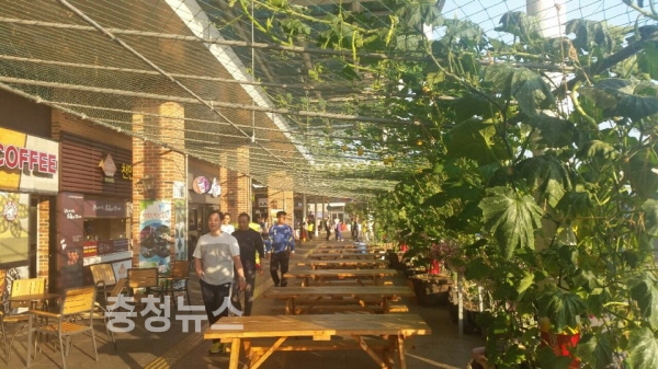 특히 휴게소 통로에는 아이들이 정서적 교육에 필요한 전통적인 식물인 조롱박, 넝쿨, 호박,장미 꽃 터널을 설치해 TV방송에 소개되는 등 운전자들의 여행의 즐거움을 선사하고 있다.