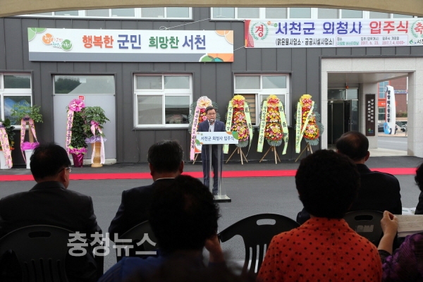 충남 서천군(군수 노박래)은 4일 구 장항버스터미널에서 노박래 군수를 비롯한 기관단체장 및 주민 등 200여 명이 참석한 가운데 맑은물사업소와 공공시설사업소 이전에 대한 ‘서천군 외청사 입주식’을 가졌다.