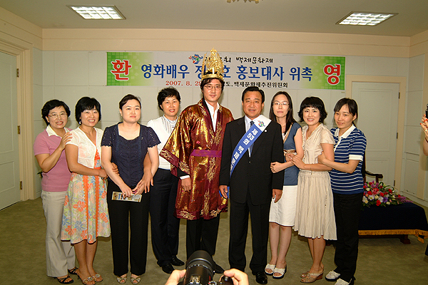 백제문화제 홍보대사 위촉식은 이완구 도지사가 영화배우 정준호씨에게 위촉패 및 꽃다발을 전달하고 축하 인사말을 통해 “오는 10월11일부터 15일까지 5일간 공주와 부여에서 처음으로 통합 개최하는 백제문화제는 전국 최대의 행사가 될 것이며 2010년 이내에 세계적인 문화제로 성장할 것”이라고 말하면서