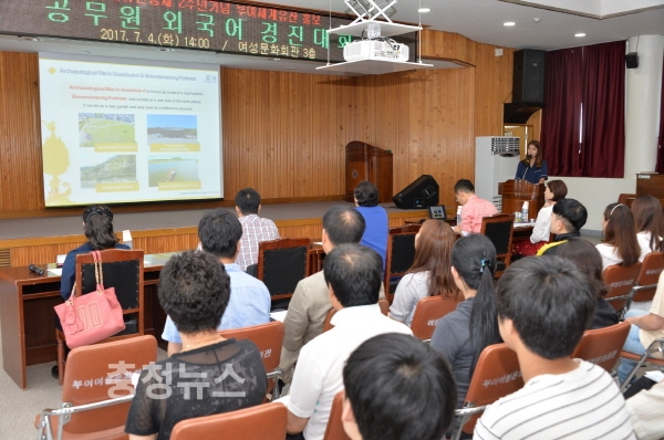 충남 부여군(군수 이용우)은 지난 4일 세계유산등재2주년을 기념하여 부여세계유산 홍보 공무원 외국어 경진대회를 여성문화회관에서 부여세계유산 보존협의회 및 공무원 70여명이 참여한 가운데 개최했다.