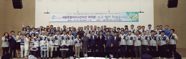 종시체육회(회장 이춘희)는 4일 세종특별자치시 정부세종컨벤션에서 해단식을 겸한 공로패 수상 및 만찬을 가지며 참석한 150여명 선수 및 임원에게 노고를 위로했다.