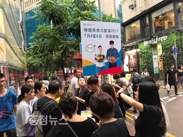 농식품부와 aT는 홍콩에서 유동인구가 가장 많은 코즈웨이베이(Causeway Bay) 역에 위치한 하이산 플레이스(Hysan Place) 쇼핑몰에서 지난 4일부터 6일까지 사흘간 주력 소비층인 20~40대를 대상으로 미래클 K-Food와 신선과실류 등 신규수출유망품목에 대한 소비자체험 홍보행사 ‘Together, Taste & Enjoy K-Food 2017’을 개최 중이라고 밝혔다.