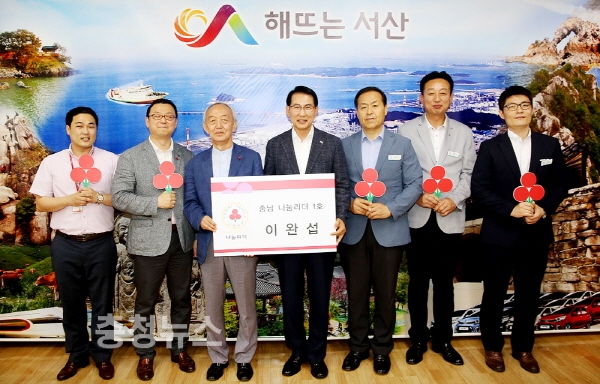 이완섭 서산시장이 6일 충남사회복지공동모금회(회장 이관형)의 나눔리더 충남 1호로 가입했다.