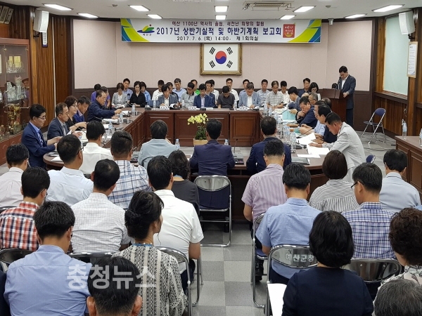 충남 예산군은 군청 제1회의실에서 ‘2017년도 상반기 추진실적 및 하반기 계획 업무 보고회’를 개최하고 민선 6기 3주년 군정 방향 및 하반기 운영 방향을 논의했다고 6일 밝혔다.
