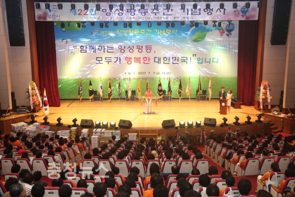 충남 보령시는 7일 보령문화예술회관 대공연장에서 ‘함께하는 성평등, 모두가 행복한 대한민국!’이라는 주제로 제22회 양성평등주간 기념행사를 개최했다.