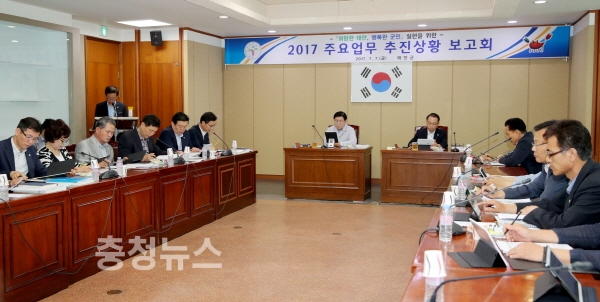 민선6기의 마지막 1년을 맞이한 태안군이 7일 ‘주요업무 추진상황 보고회’를 개최하고 군정목표인 ‘희망찬 태안, 행복한 군민’ 시대 개막을 위한 업무 공유의 장을 마련했다.