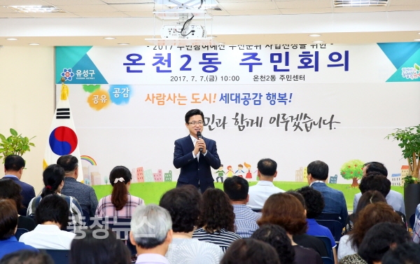 대전 유성구(구청장 허태정)는 지난달 26일부터 이달 7일까지 순차적으로 관내 11개 주민센터에서 동 주민회의를 개최했고, 접수된 총 65건(8억 5천여만 원) 사업의 우선순위를 결정했다고 7일 밝혔다.