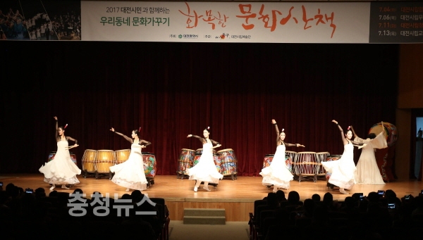 ‘우리 동네 문화 가꾸기’를 테마로 지난 4일 대전시립합창단, 6일 대전시립무용단의 공연을 선보였던 화목한 문화산책 첫 주 일정이 입추의 여지없이 들어선 관객들의 뜨거운 호응과 함께 성황리에 마무리된 바 있다.