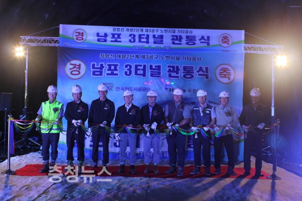 한국철도시설공단 충청본부(본부장 이동렬)는 장항선 개량2단계 제3공구 공사구간 중 서해안 축 최장 터널인 남포3터널의 굴착을 완료하고, 11일 관통식을 개최한다고 밝혔다.
