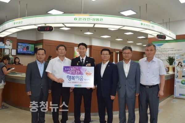 농협 충남지역본부(본부장 유찬형)은 도농상생과 농가소득 증대를 지원하는 ‘행복이음패키지’ 릴레이 가입행사를 11일 김재원 충남경찰청장과 함께 가졌다.